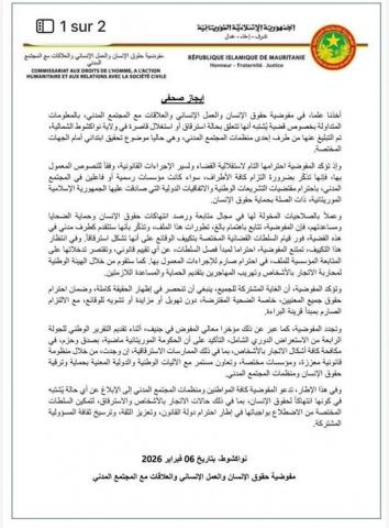 قالت مفوضية حقوق الإنسان والعمل الإنساني والعلاقات مع المجتمع المدني إنها أخذت علما ب