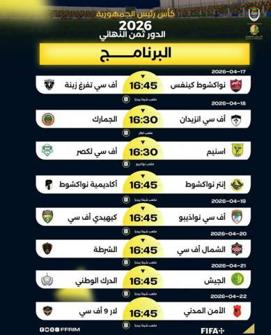 تفتتح اليوم مباريات دور 16 من كأس رئيس الجمهورية بمواجهة تجمع بين نواكشوط كينغ وتفرغ زينة على ملع
