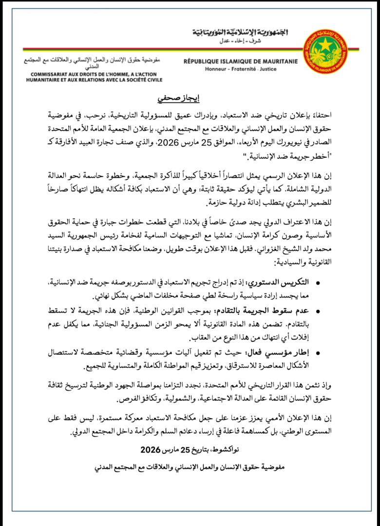 وأصدرت الوزارة إعلانا موقعا من طرف الأمين العام للوزارة بيت الله ولد أحمد لسود يحث الأئمة على ضرورة تناول الموضوع في خطبة الجمعة.