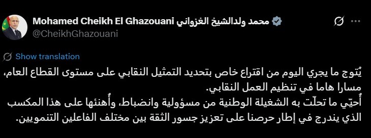ووصف ولد الغزواني في تغريدة عبر منصة "إكس" (تويتر سابقا) هذه الانتخابات بأنها مكسب للعمال.