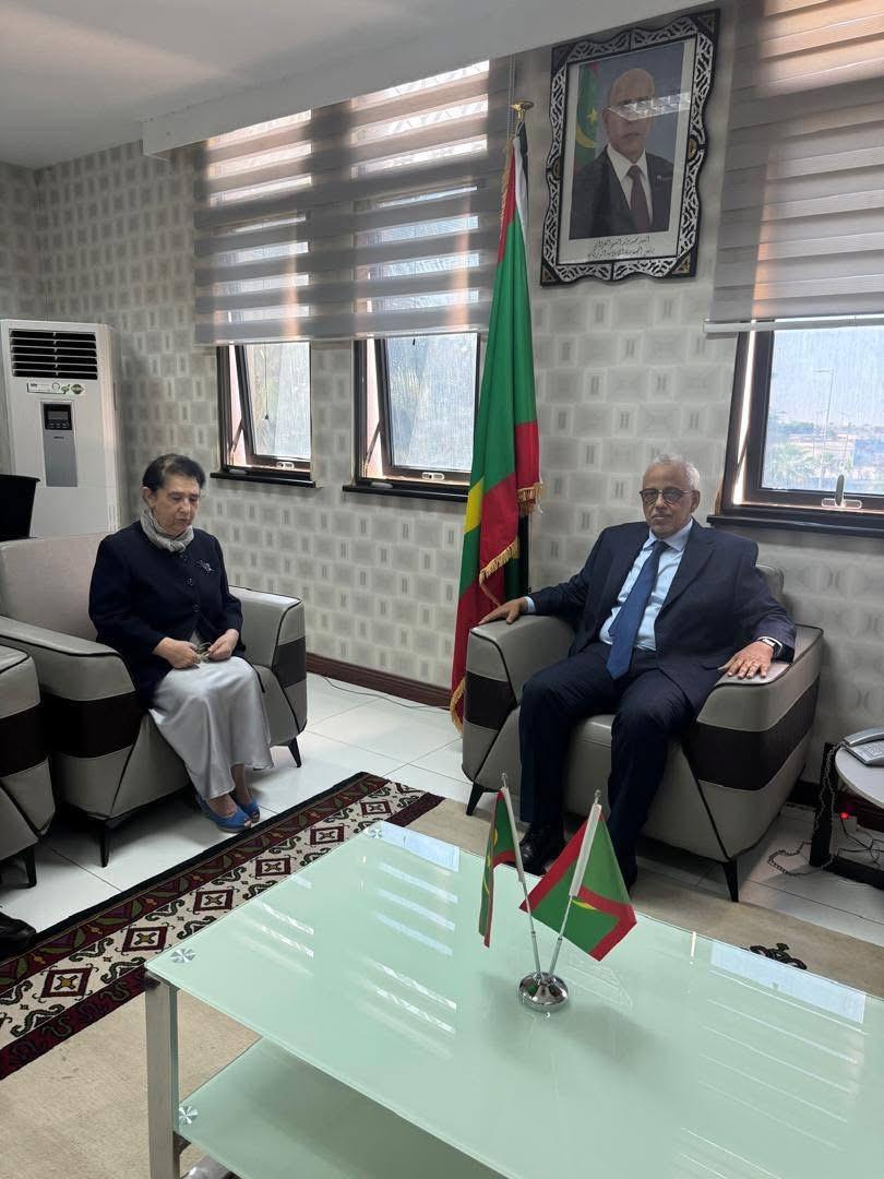 عقد وزير الشؤون الاقتصادية والتنمية، عبد الله سليمان الشيخ سيديا، اليوم الجمعة، اجتماعا مع سفيرة إيطاليا في موريتانيا، لورا بوتا، تناول العلاقات القائمة بين البلدين وسبل تطويرها.