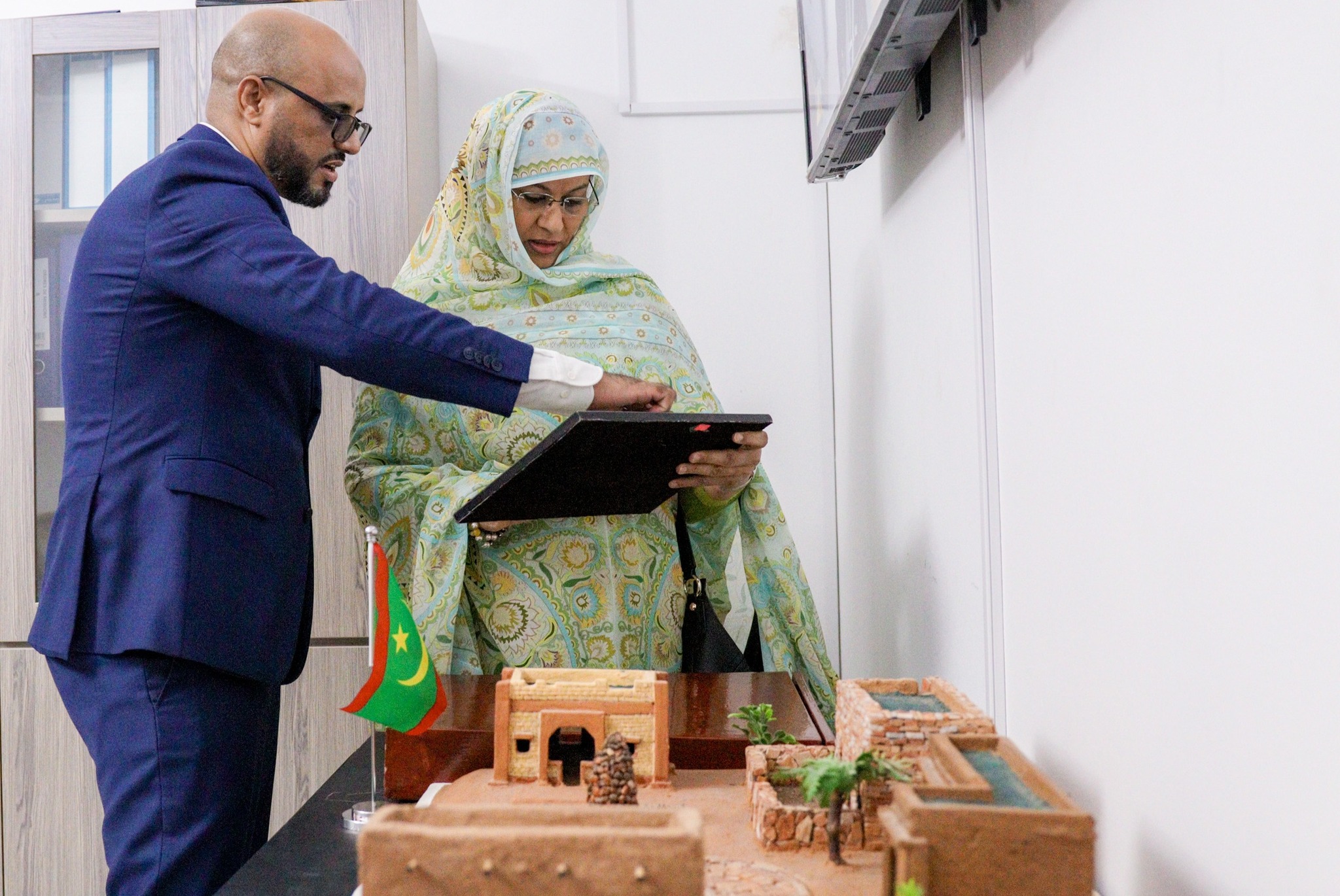 واستُقبلت معالي الوزيرة من طرف المدير العام للمؤسسة السيد السالك ولد جلال، محاطا بمسؤولي وعمال مؤسسته. حيث قدم شروحا فنية حول واقع المؤسسة والمشاريع قيد التنفيذ، مستعرضا الآفاق الواعدة للبناء بالمواد المحلية.